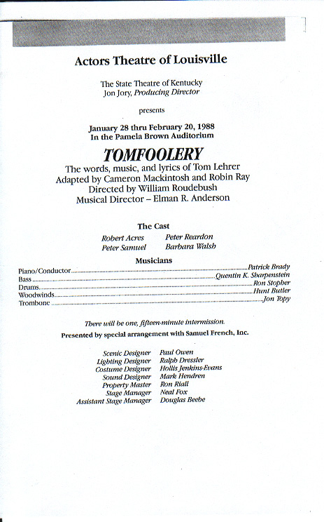 Actors Theatre, Louisville, Janurary 27-Feburary 20, 1988