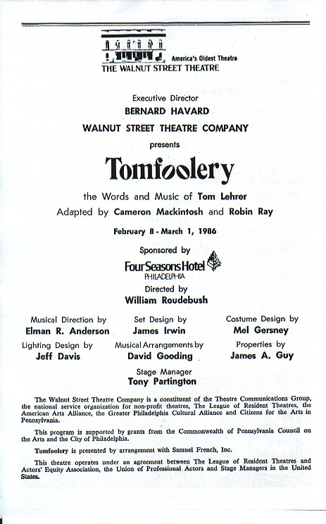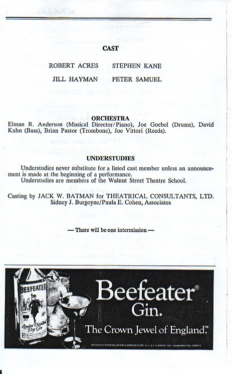 Walnut Street Theatre, Philedelphia, Feburary 8 - March 1 1986